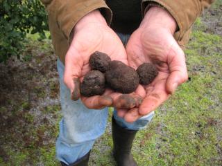 Périgord Black Truffle is roughly rounded, shaped by stones in the soil